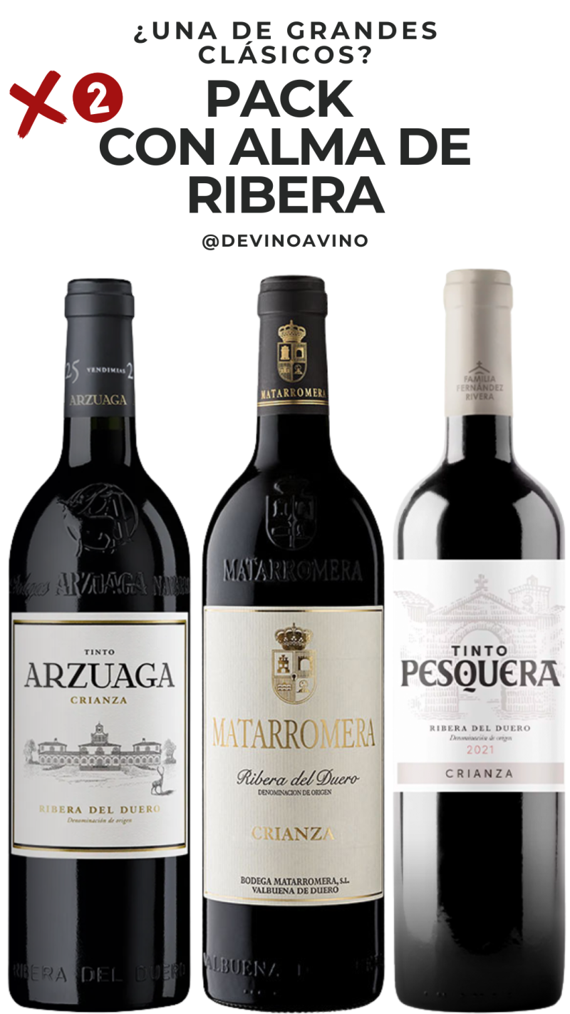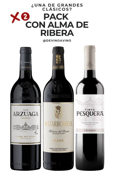 Este pack exclusivo de 6 vinos de Ribera del Duero reúne tres de los nombres más emblemáticos de la denominación, auténticos referentes de calidad y prestigio.