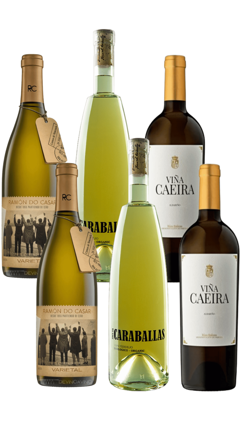 Este pack reúne 2 botellas de Finca Las Caraballas Verdejo Ecológico, 2 botellas de Ramón do Casar Varietal y 2 botellas de Viña Caeira en una selección pensada para quienes buscan blancos con ventas contrastadas, perfiles complementarios y una compra fácil de disfrutar.