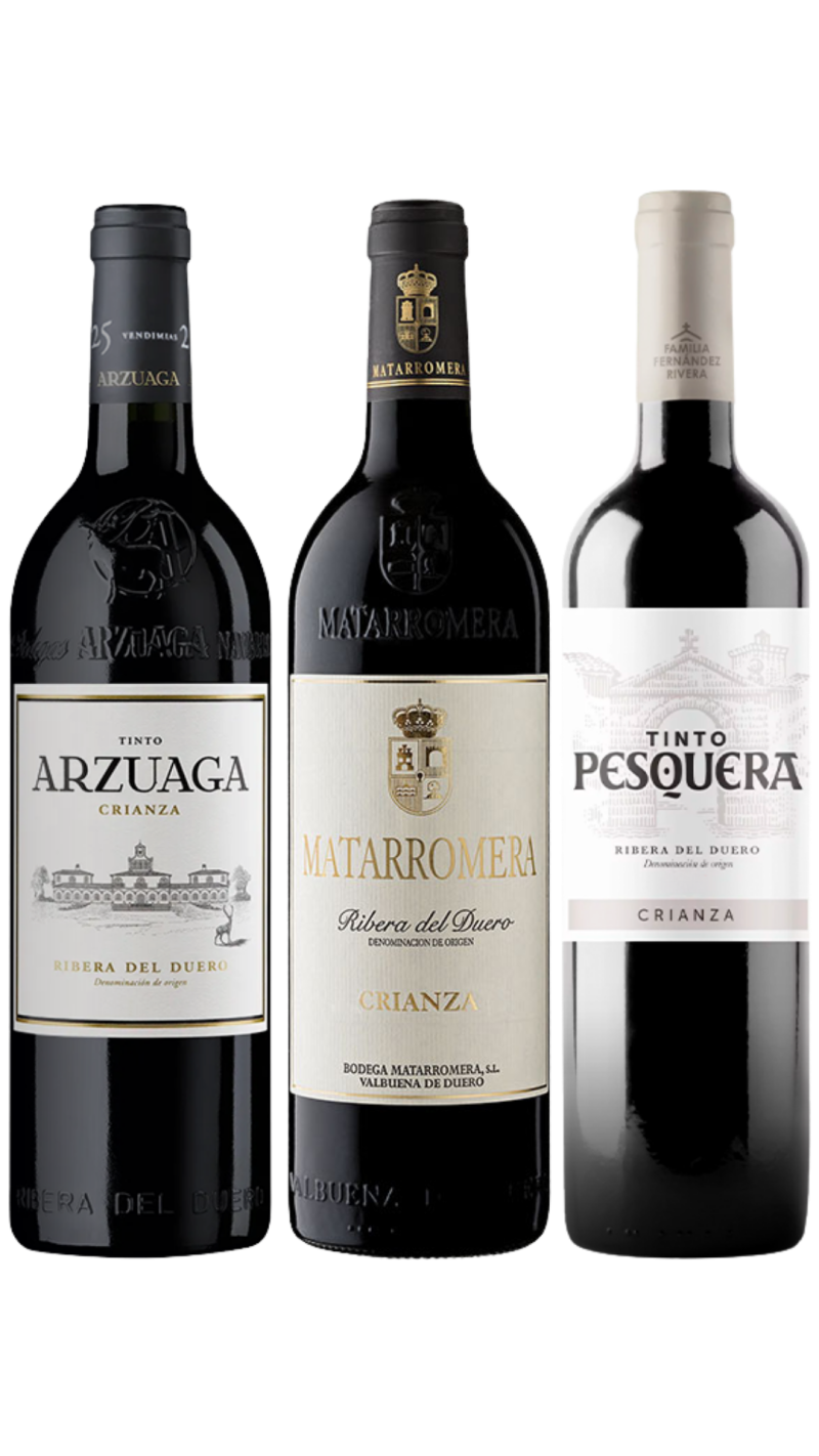 Este pack exclusivo de 6 vinos de Ribera del Duero reúne tres de los nombres más emblemáticos de la denominación, auténticos referentes de calidad y prestigio.