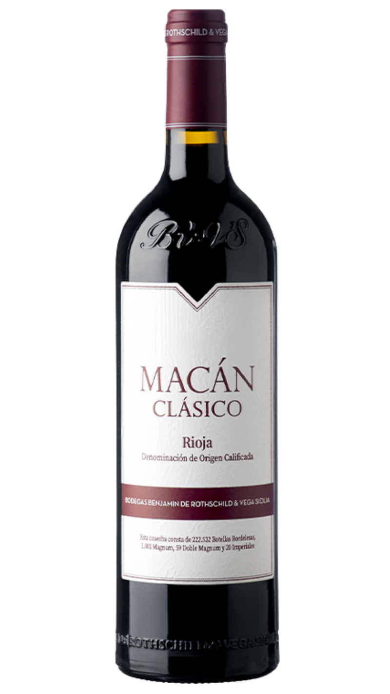 Macán Clásico es la interpretación más accesible y vibrante del proyecto conjunto entre Benjamín de Rothschild y Vega Sicilia en la D.O.Ca. Rioja. Un monovarietal de Tempranillo que refleja con precisión el carácter de la Rioja Alavesa: frescura, equilibrio y elegancia.