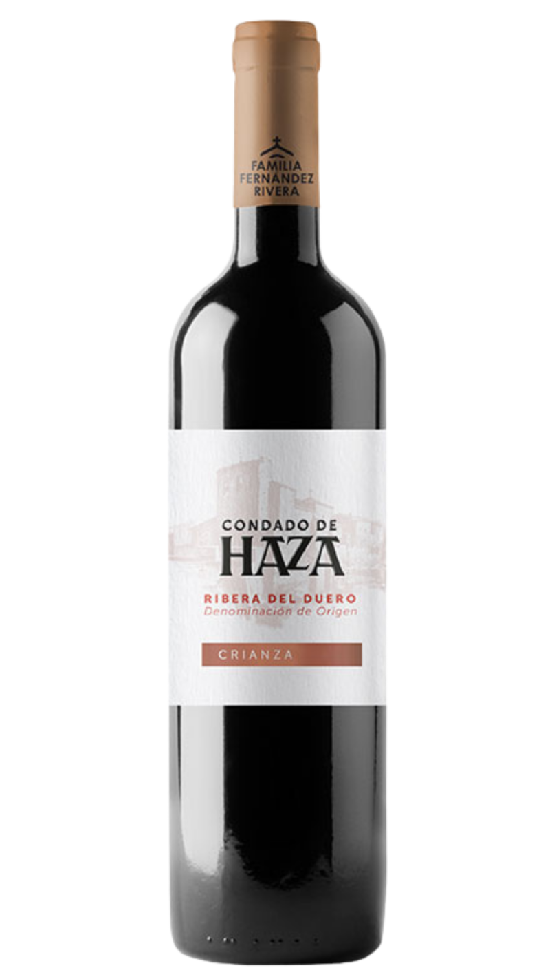 Condado de Haza Crianza es un vino tinto de Ribera del Duero elaborado con Tempranillo procedente de viñedos propios situados en una misma finca, siguiendo el concepto de château. Su crianza en barrica de roble americano aporta complejidad y redondea el vino, manteniendo un estilo clásico donde la fruta y la madera se integran con equilibrio.