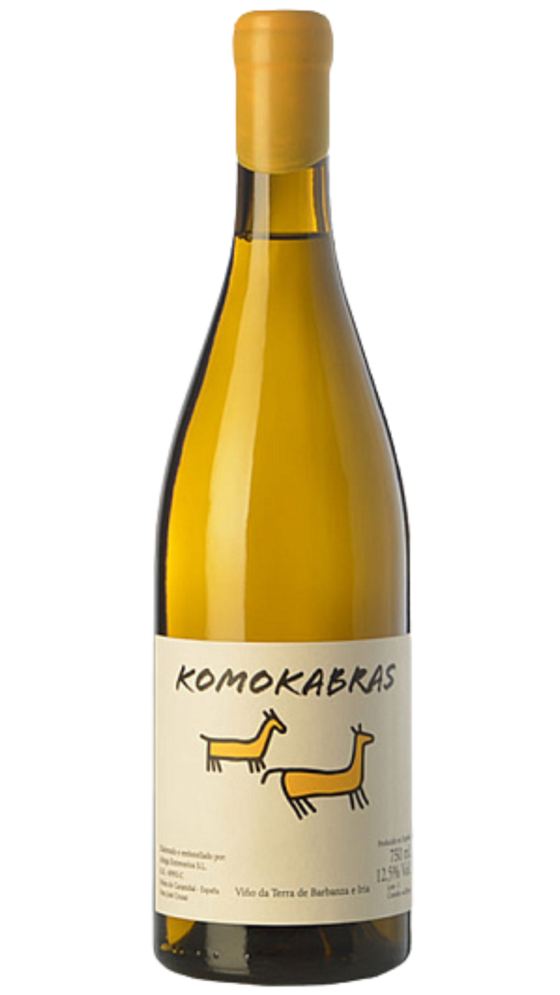 El Komokabras Amarillo es un vino blanco 100% Albariño elaborado artesanalmente por Adega Entre Os Ríos, una bodega familiar ubicada en la IGP Barbanza e Iria, en la Ría de Arousa (Galicia).