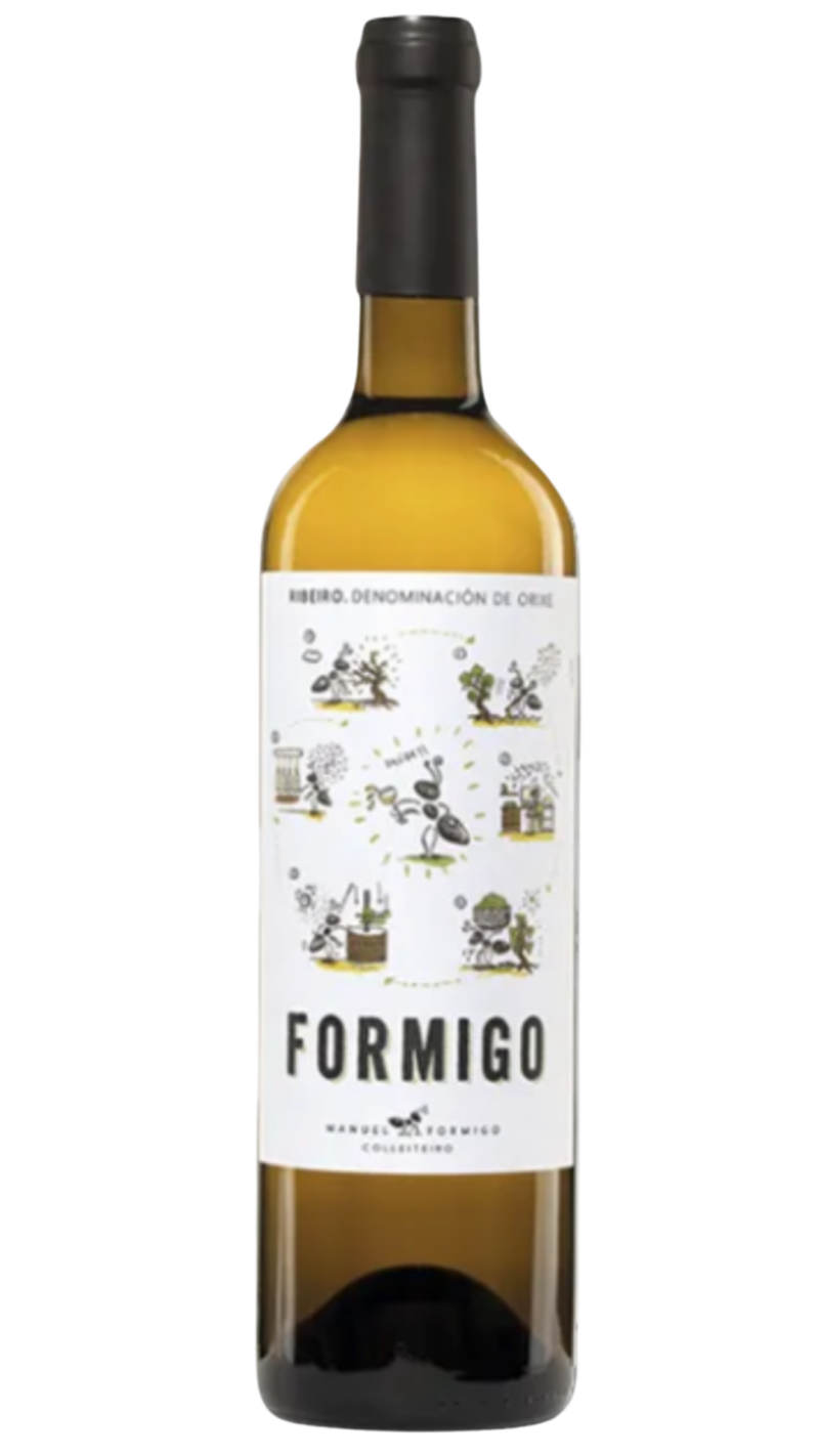 Procedente de viñedos familiares situados en la Finca Teira, con suelos graníticos sueltos y bien drenados, Formigo Blanco reúne las variedades autóctonas más emblemáticas de Galicia: Treixadura, Godello, Albariño, Loureira, Torrontés y Palomino. Estas uvas se cosechan de forma manual, fermentan a baja temperatura en acero inoxidable y se embotellan sin fermentación maloláctica para preservar toda su frescura natural.